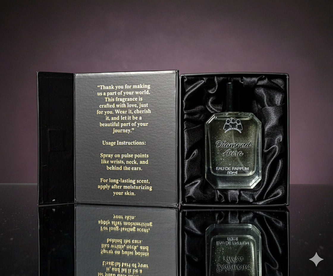 A refined and modern fragrance that speaks of elegance and confidence. Diamond Aura blends crisp citrus freshness with aromatic spices and smooth woods, creating a scent that feels effortlessly stylish. Perfectly versatile, it transitions from day to night with ease, leaving behind a polished and lasting impression.